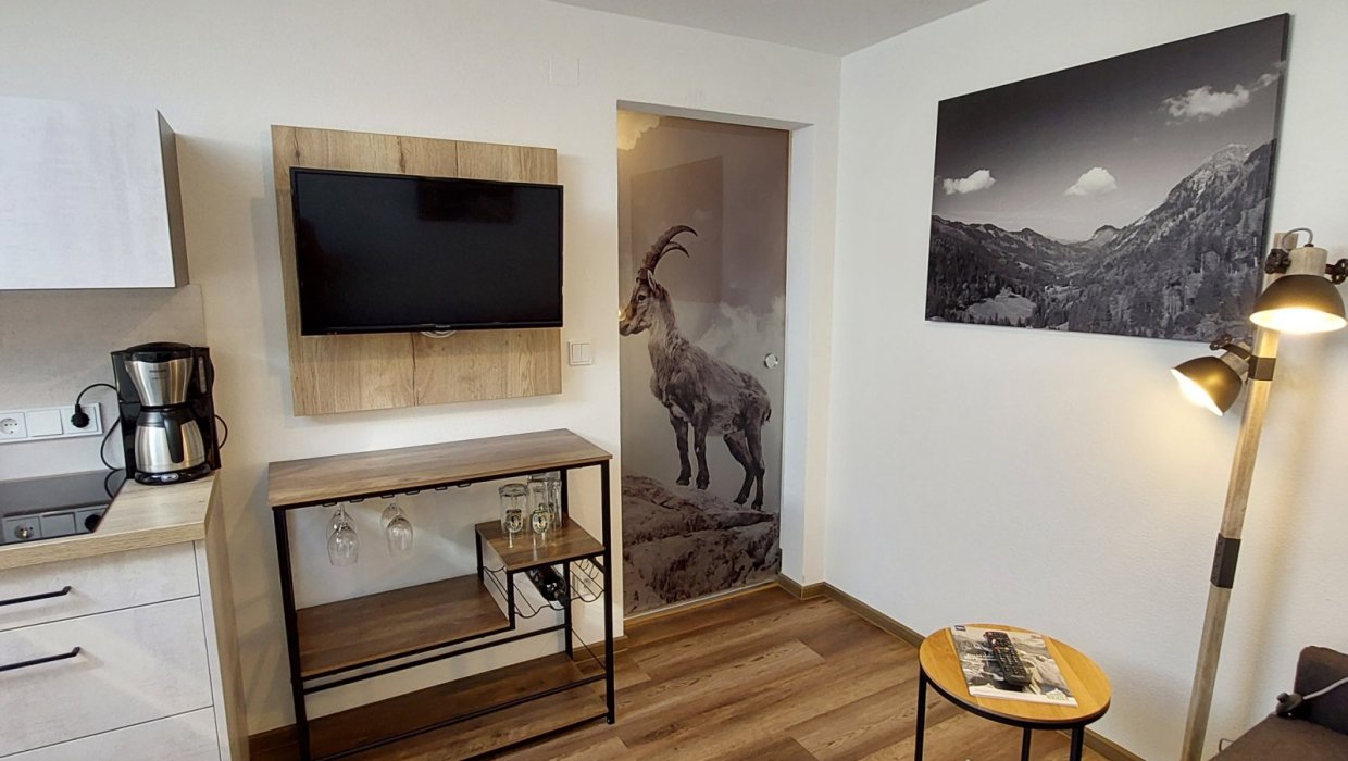 Unser ruhig gelegenes Studio mit Balkon bietet viel Raum für Komfort und Flexibilität – ideal für Paare, kleine Familien oder Gäste, die gerne etwas mehr Platz genießen. Die freundliche, gemütliche Einrichtung schafft eine angenehme Wohlfühlatmosphäre für entspannte Urlaubstage im Allgäu.